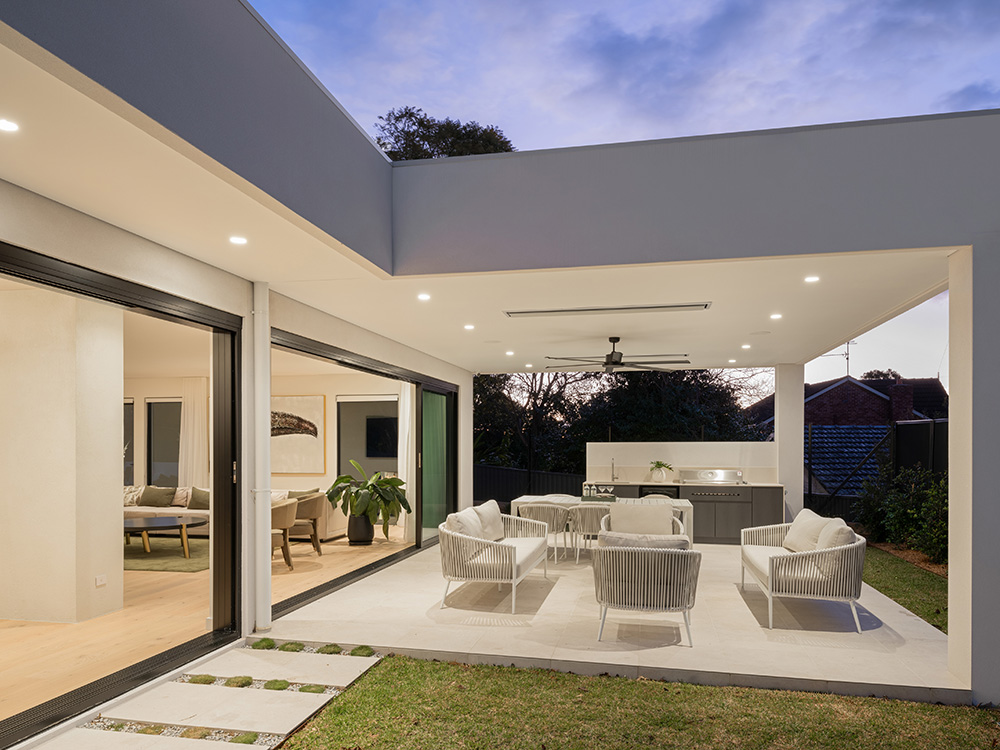 Davis is the ultimate family residence in Glenhaven, designed to combine modern sophistication with functional living. Its sleek, curved exterior and seamless panel garage facade set a contemporary architectural tone, while light-filled interiors create a bright and welcoming atmosphere throughout the home.